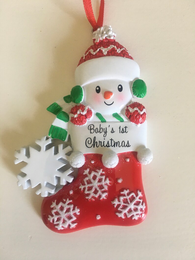 15% off with code summerartzaz. Pull out this ornament year after year as part of your holiday tradition. Personalized baby's 1st christmas pink snowbaby with candy cane christmas ornament. Blue baby's first christmas sleigh ornament. 5 out of 5 stars. Boy baby's first beach baby ornament. Not only is a personalized baby christmas ornament an instant family heirloom, but it's a gift that can be enjoyed for years to come as the baby grows. Choose from a wide variety of photo and picture frame ornaments to add their cute smiles and happy faces so you can look back at them each year. Free personalization on 5000+ ornaments. Each of our high quality ornaments are hand personalized to your specifications by one of our trained artists. 5 out of 5 stars. Commemorating baby's first christmas is truly a wonderful experience for the entire family. A baby's first christmas ornament is an excellent keepsake—and personally one of my favorites.
